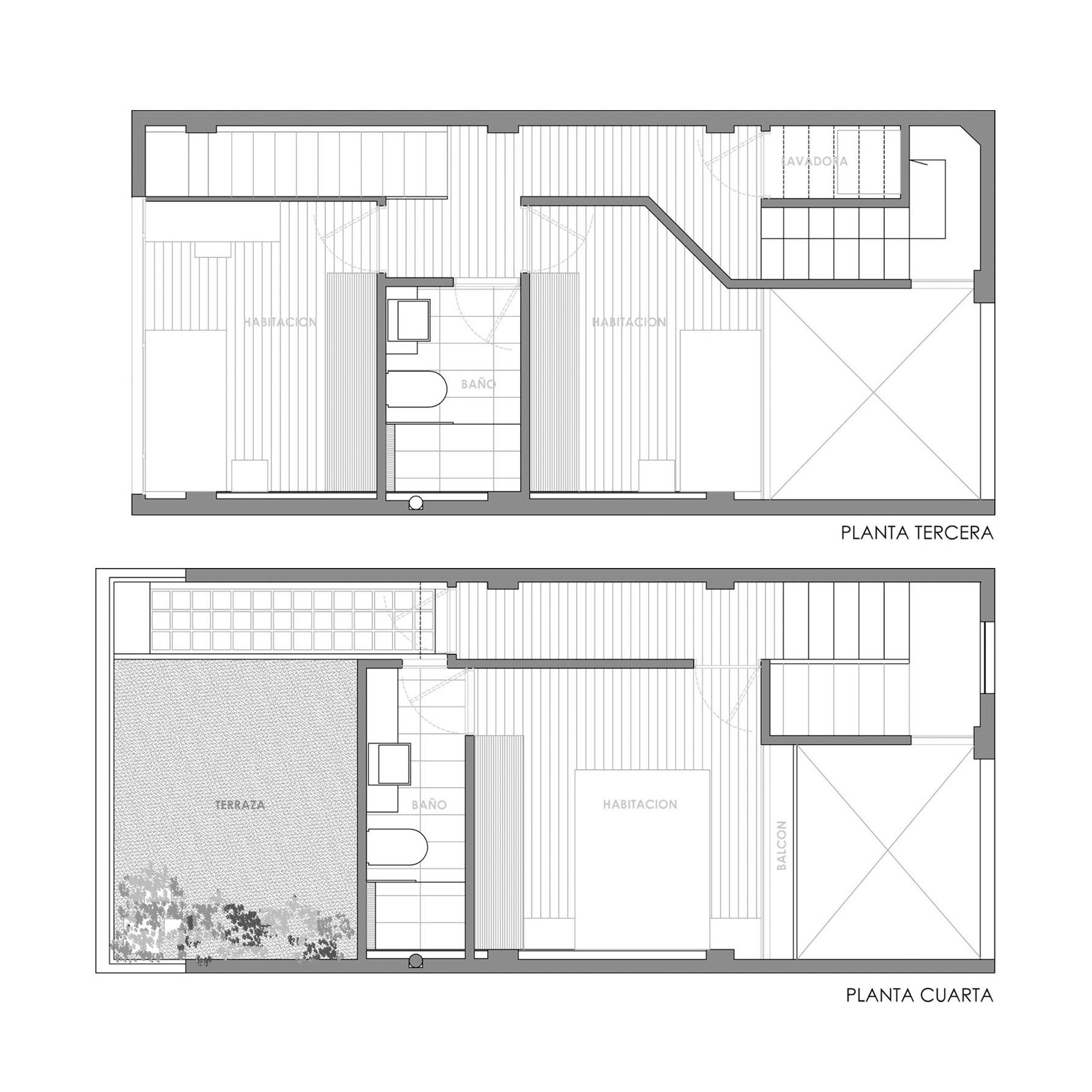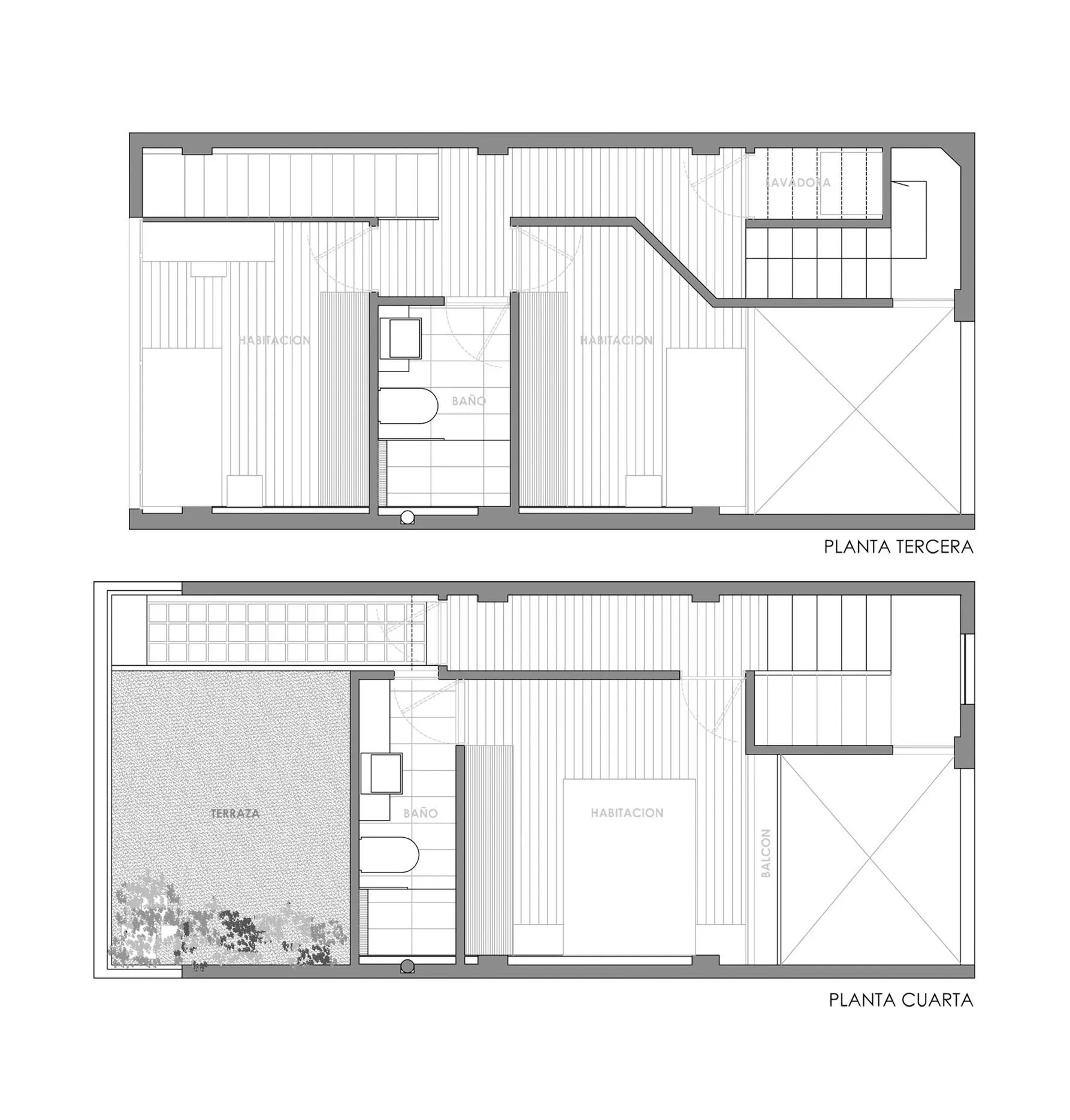 La casa surge como una reflexión respecto a la luz. En la planta baja, ésta se filtra a través del patio. A medida que se asciende aparecen nuevas sugerencias para que la luz sea protagonista. En la primera y segunda plantas, la luz entra por un tragaluz, algo que sugiere una manera distinta de percibirla; un trozo de cielo en un espacio cerrado. Un recorrido que finaliza a cielo abierto, en la terraza.
