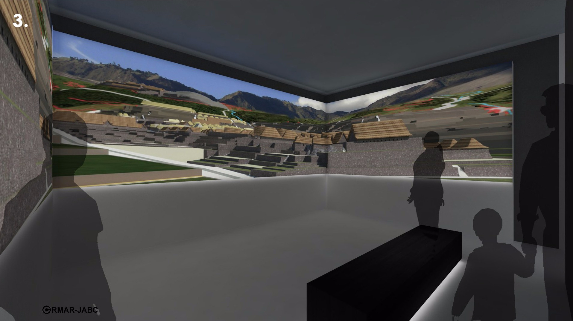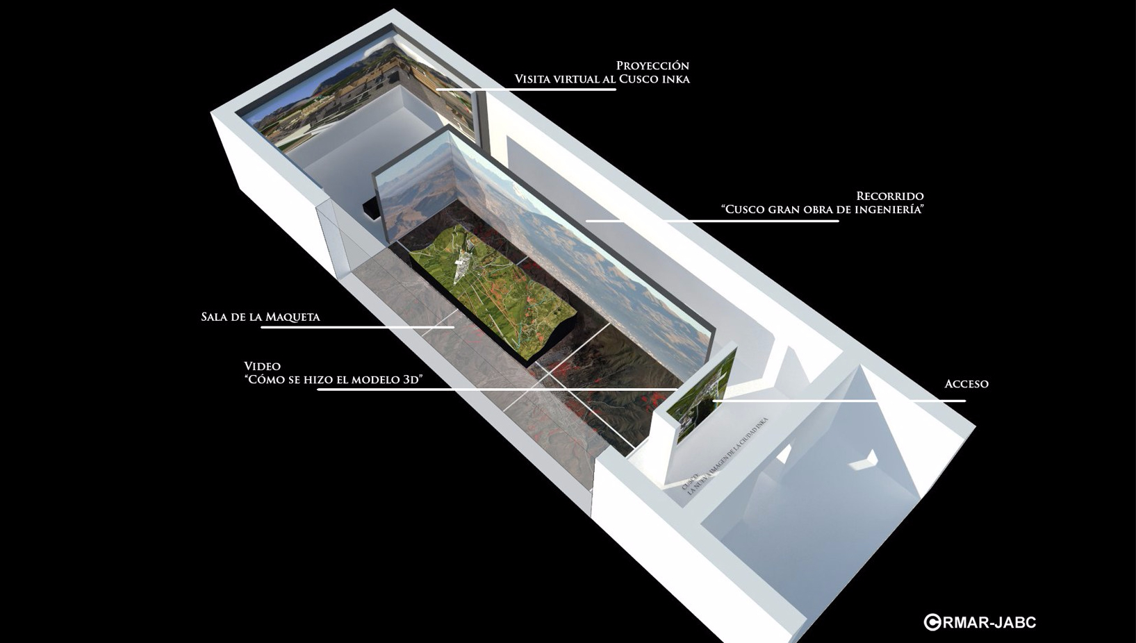 La propuesta se basa en crear una experiencia en la que el visitante tenga la oportunidad de poner en contexto la dimensión de la obra llevada a cabo por los inkas en el Cusco; descubrir la arquitectura de la ciudad en época inka; situar el Cusco inka en el contexto del valle; y mostrar el proceso de construcción del modelo virtual.