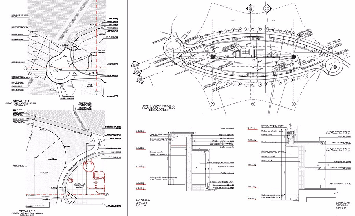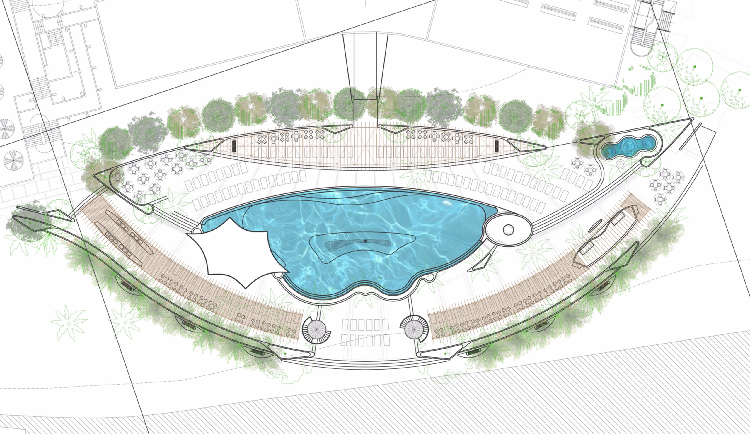 Esta nueva piscina para un Centro Vacacional busca ser la referencia a partir de la cual se definan las características de las demás piscinas del complejo. Tanto el tipo de piscina en sus formas, colores, materiales y vegetación circundante, como las instalaciones anexas fueron diseñadas con tal fin.