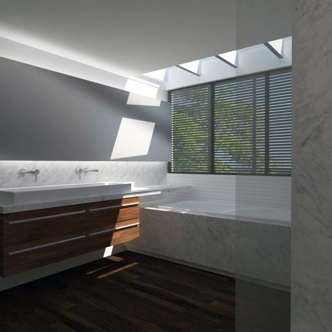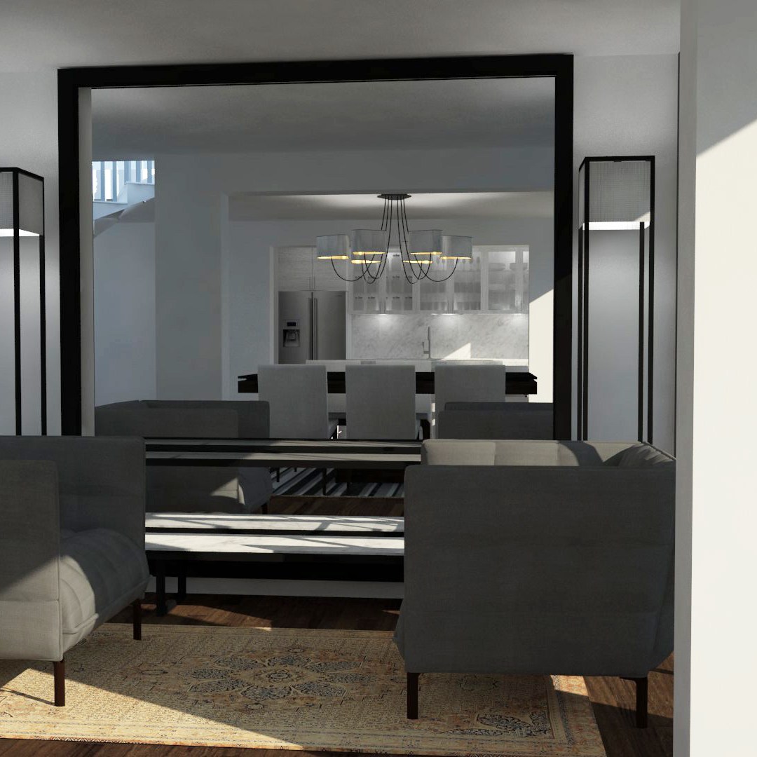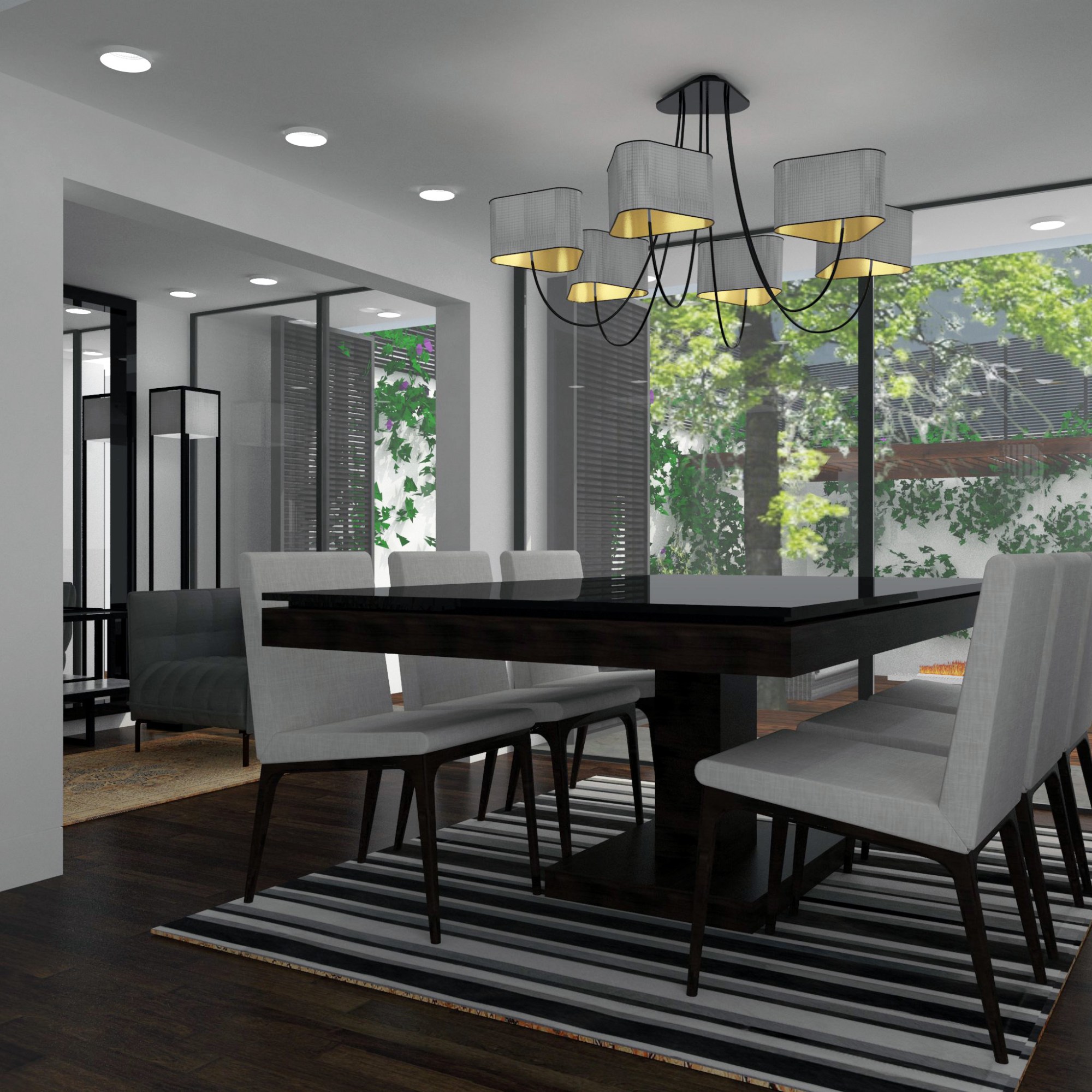En la planta baja, el proyecto elimina las zonas de servicio ubicadas en la parte posterior de la casa para ampliar el jardín. La sala auxiliar, el comedor y la cocina están ubicados en relación directa con el jardín posterior pero en la actualidad tienen unas ventanas pequeñas y un paso restringido a éste. Por esto se plantea abrir estos espacios al jardín generando una comunicación directa, tanto visual como física. En la zona del comedor y la sala anexa se retraen los cerramientos con el fin de disponer una zona intermedia de porche cubierto.