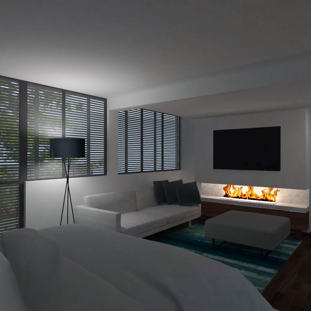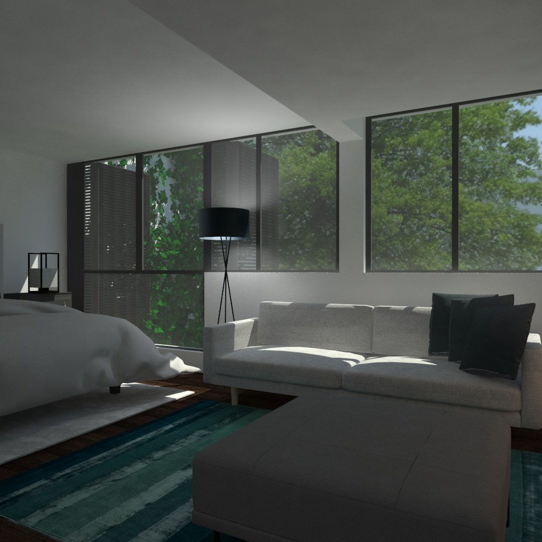 En la segunda planta se ubican dos zonas independientes: descanso (habitación principal, baño y vestidor) y despacho para el nuevo propietario; la otra, un pequeño apartamento para alojar invitados.